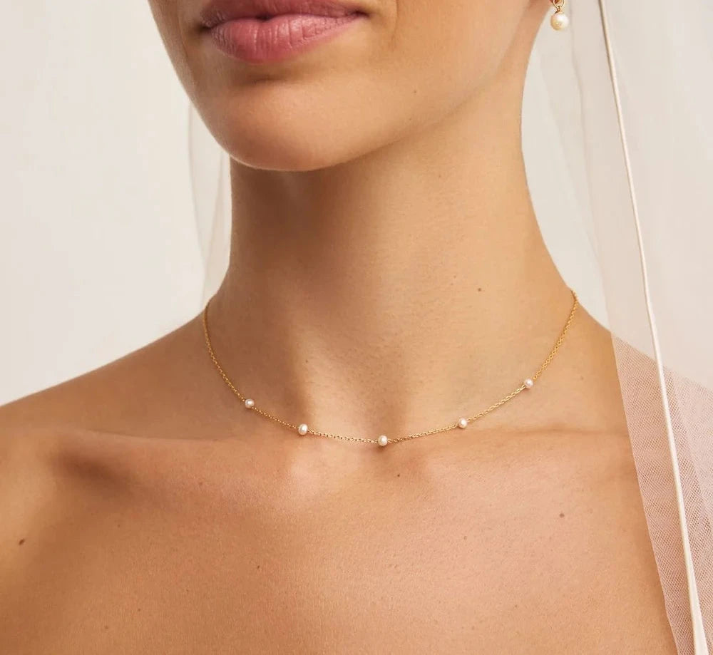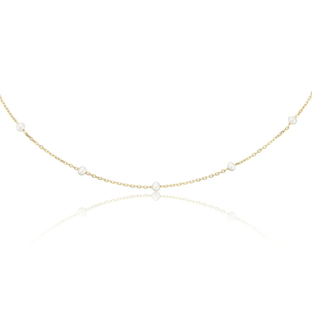 Collar de acero inoxidable tejido con perlas cultivadas.