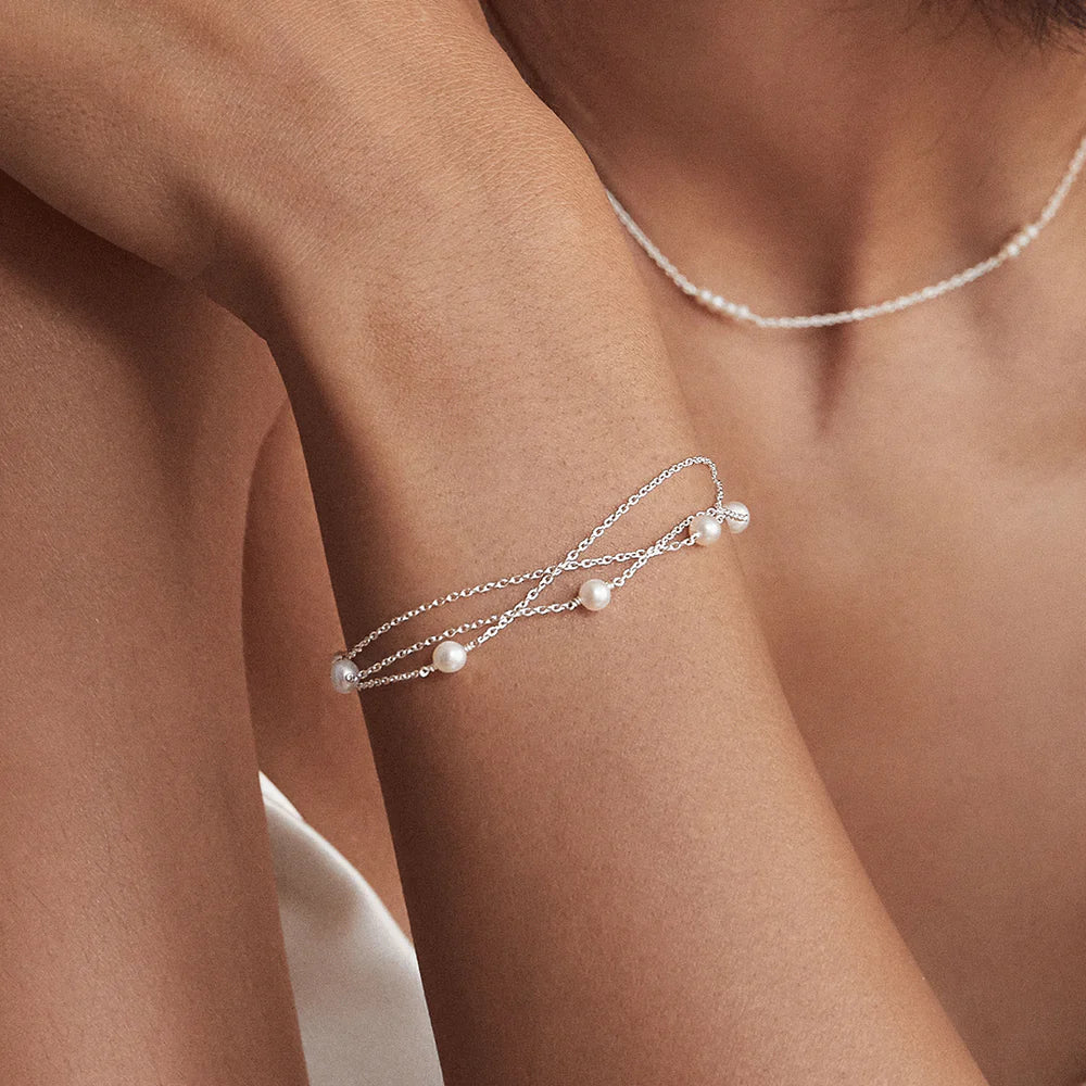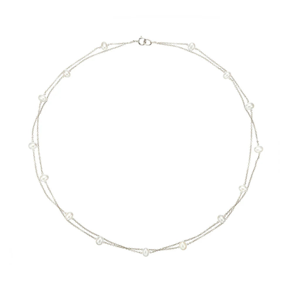 Collar con dos capas de cadena acero inoxidable y perlas cultivadas naturales tejidas.
