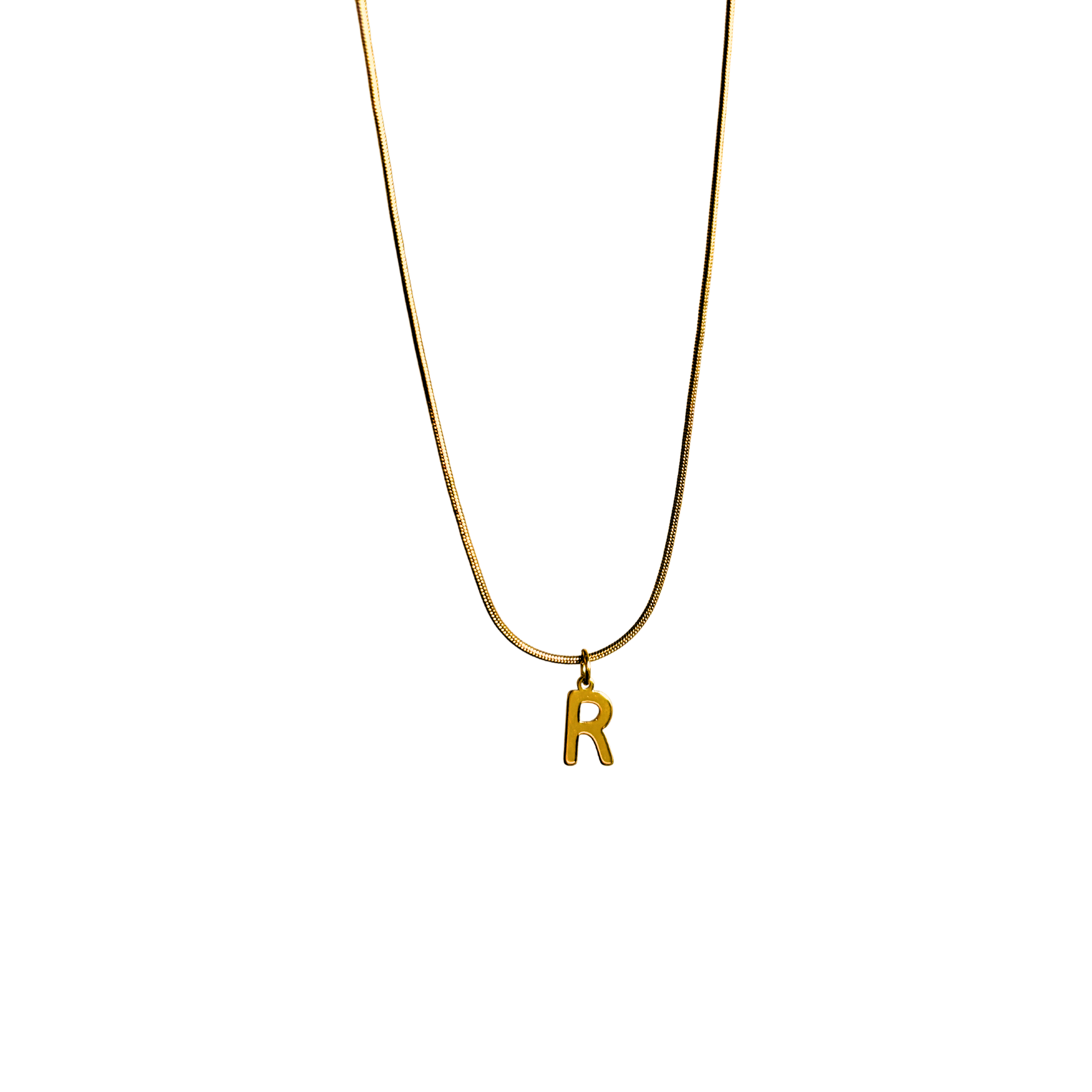 Collar con cadena de acero inoxidable tejido snake + inicial lisa.