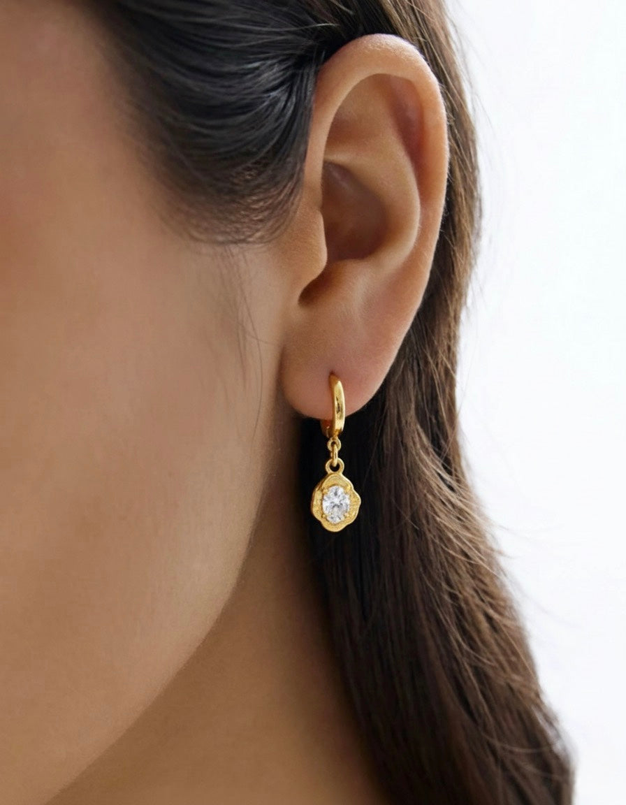 hoops de oro laminado con dije abstracto y zirconia