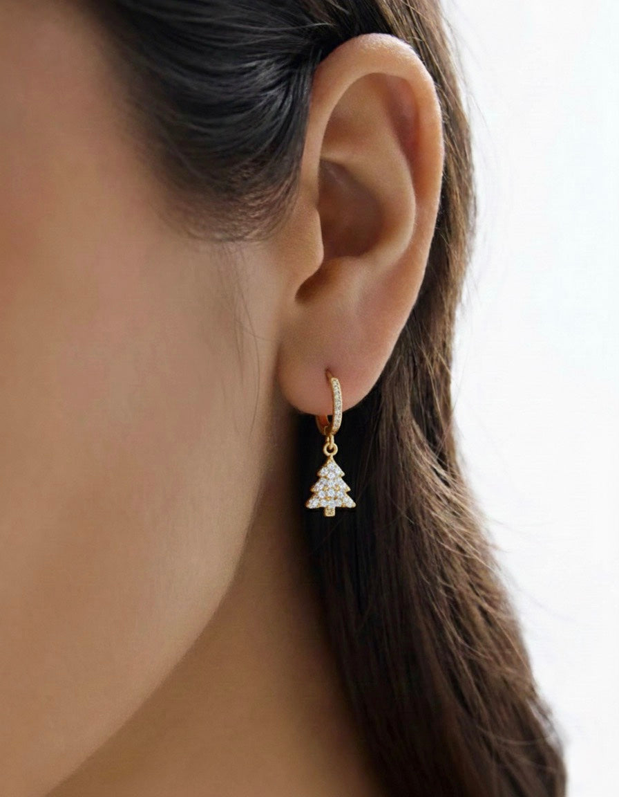 Hoops con dije de arbolito de navidad y zirconias en oro laminado