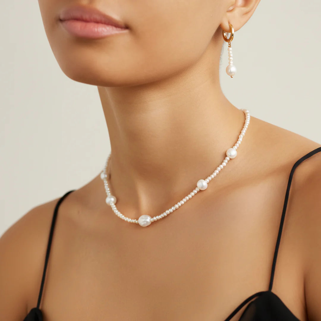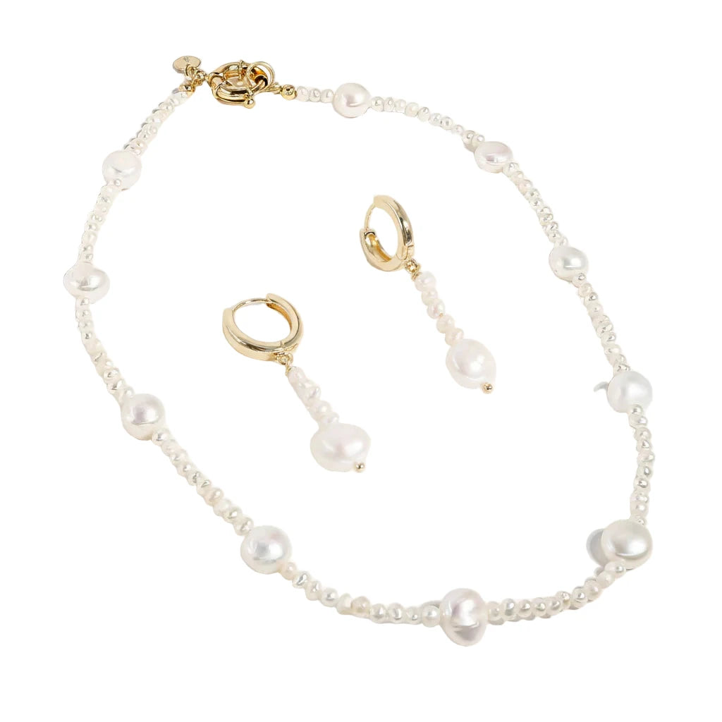 Collar y aretes de Perlas cultivadas naturales, bases y ganchos de oro laminado