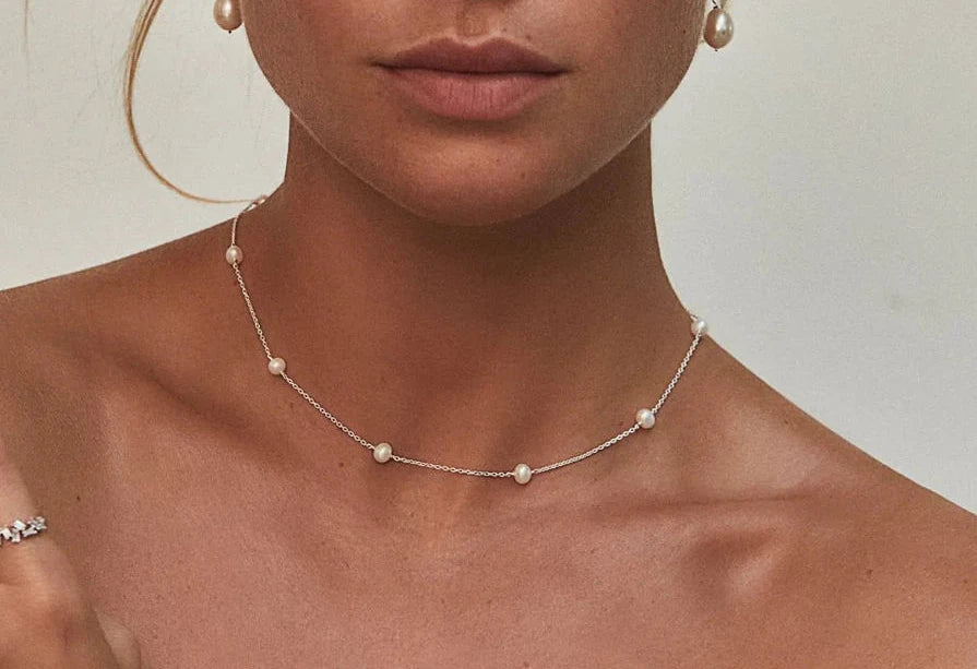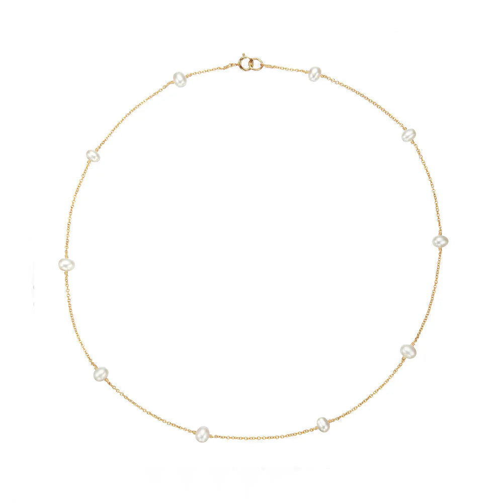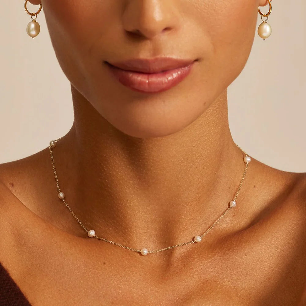 Collar de acero inoxidable con perlas cultivadas tejidas a mano con oro laminado